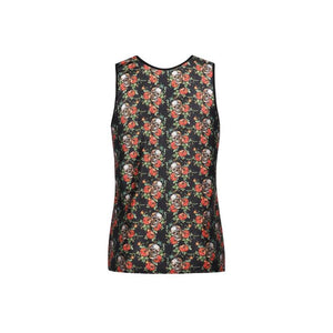 Modal suave de color claro con estampado de rosas y calaveras
