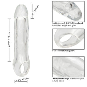 Experimenta un placer elevado con la Performance Maxx Clear Extension 6.5". Esta extensión aumenta tu tamaño y confianza, ofreciendo longitud y grosor adicionales. Con una cabeza sólida ultra suave de 1.5 pulgadas / 3.75 cm, proporciona una sensación realista, y el diseño transparente estimula visualmente, mostrando tus atributos naturales. El diseño hueco realista es cómodo, con una correa de escroto incorporada para estabilidad durante el uso. Fabricado con materiales seguros para el cuerpo, sin fragancias y libres de ftalatos, garantiza tranquilidad. Ya sea agregando emoción a encuentros íntimos o explorando nuevas sensaciones, la Performance Maxx Clear Extension 6.5" mejora las experiencias y ayuda a alcanzar nuevos niveles de placer.
